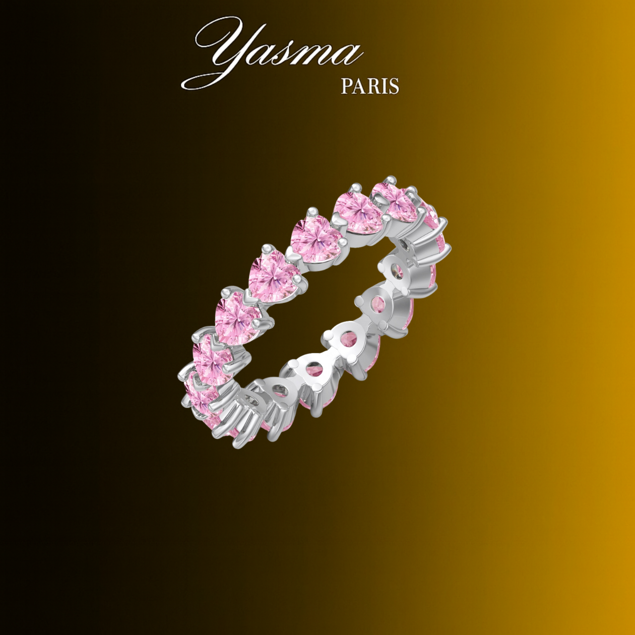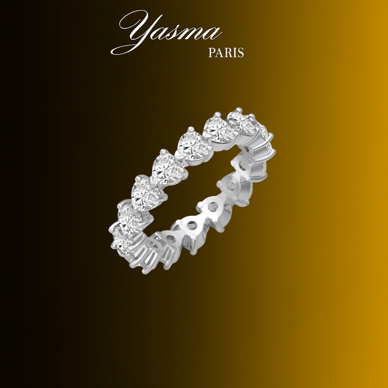 Alliance en Argent 925, sertie de pierres en zircon, design en forme de coeur