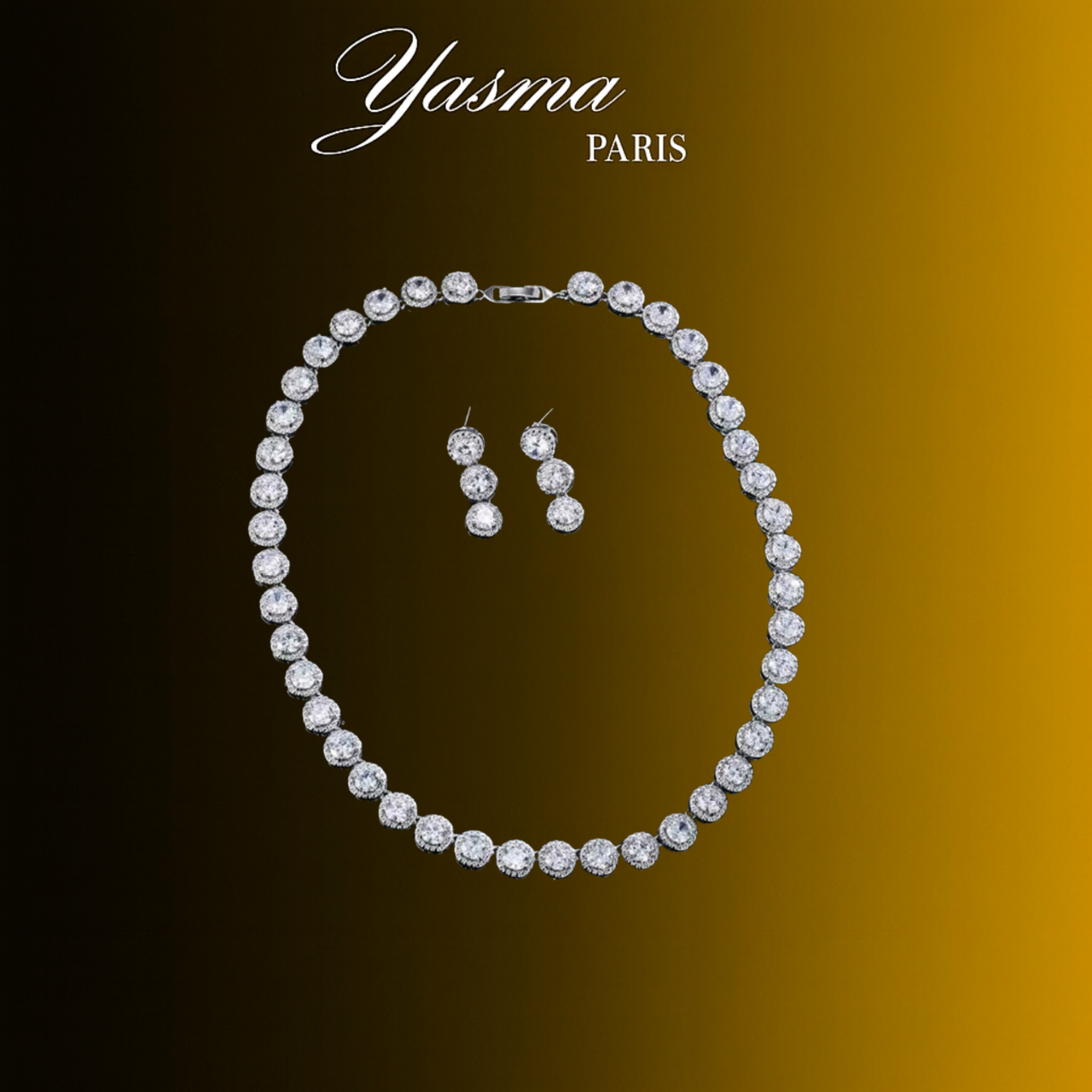 Ensemble CRISTAL- Rat de cou & Boucles d’oreilles plaque argent & pierre Zircon